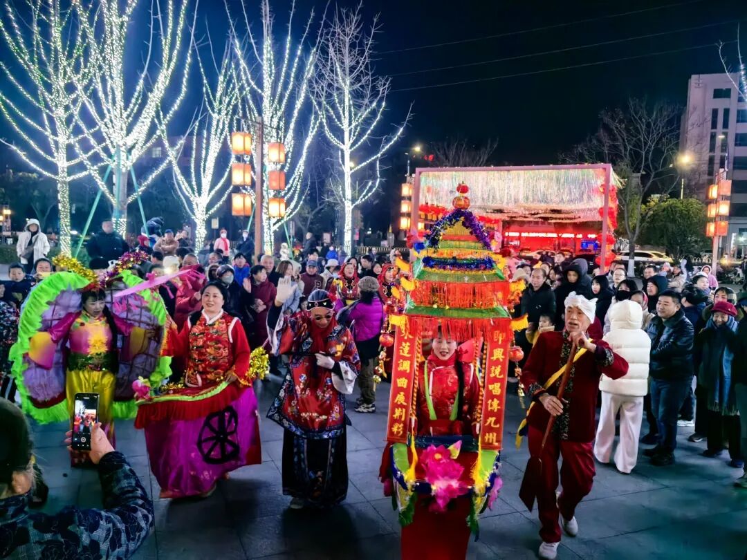 2026年的第一缕夜色笼罩荆楚大地,荆街的灯笼次第点亮,荆州市非遗保护中心带来的非遗踩街巡游队伍踏光而来。我市国家级非遗项目五虾闹鲇领衔,市级非遗项目非遗采莲船、蚌壳精紧随其后,在寒冷的冬夜中点燃市民的热情,用最地道的民俗韵味共庆新年开篇。